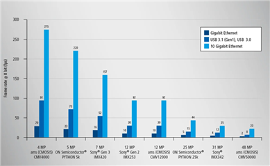 現代CMOS傳感器在高靈敏度,低暗噪聲和高幀速率以及非常高的動態范圍內,可提供出色的圖像質量。這些優點與10 GigE界面一起在快速過程中發揮了優勢,例如在60 fps時高達4K的視頻應用以及運動分析和虛擬現實應用中。