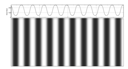 相移方法利用一組灰度圖像,其像素強度由正弦波模式定義,如圖2所示。通常,使用三個(或可能更多)圖像之間具有已知相移的圖像。將相移后的圖案順序投影到對象上,然后在進行相位展開操作之后,將所得的差異圖像與參考平面進行比較,以提取原始對象的表面特征。