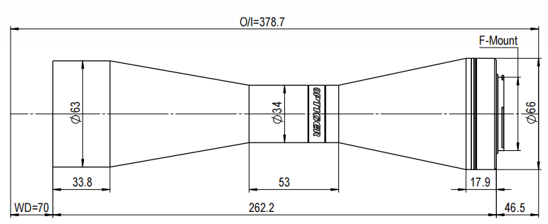 TTL39.2系列標準雙遠心鏡頭標準F接口或M58接口,最大兼容39.2mm(對角線39.2mm)靶面工業相機。